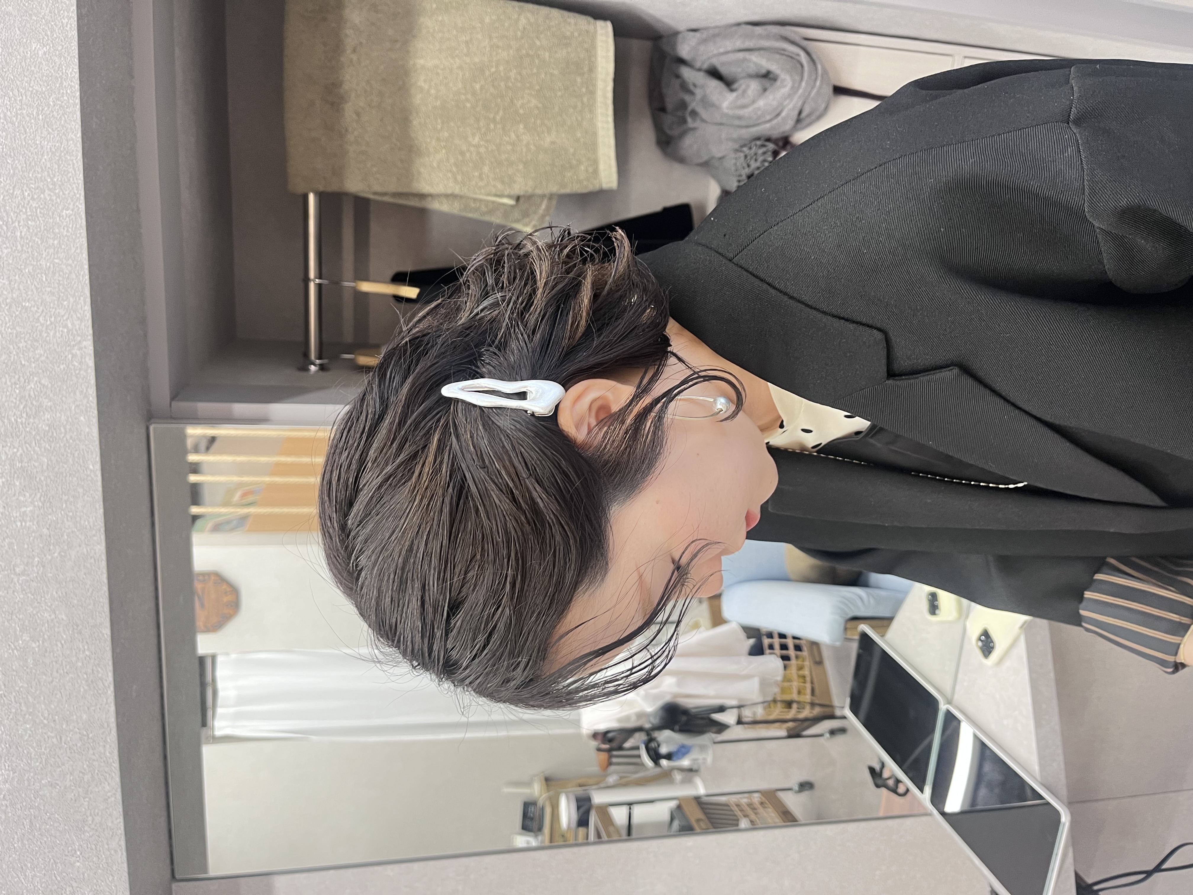ボブヘアなのでがっつりまとめたりはせず、カールを付けて