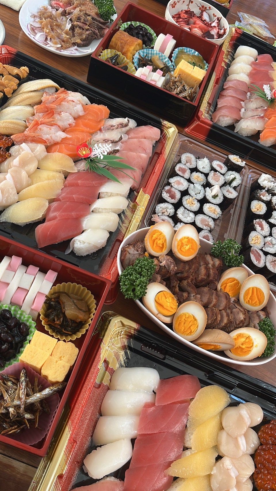 お正月は親戚集まっておせち料理やお寿司、蟹を食べたりと